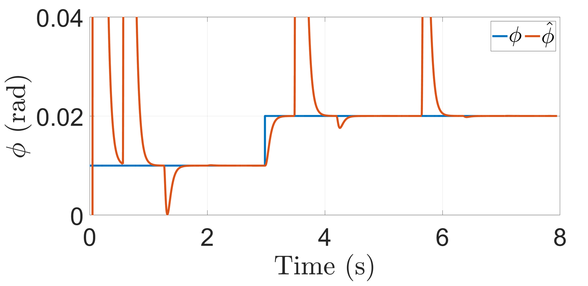 In control theory, (state) observers—sometimes referred to as estimators or filters—are indispensable tools for estimating in real time the state of dynamical systems when direct measurement of the state variables is impossible or impractical [1]. As illustrated in Figure 7, these algorithms leverage the system’s measured outputs (obtained thanks to sensors) and known inputs, potentially utilizing their history as well, to reconstruct in real time the current state, which contains critical information about the system’s current condition. In certain contexts, the system’s unknown parameters or uncertainties can be modeled as an extra state component, so state estimation schemes typically encompass parameter or unknown input estimation schemes (thus, in this dissertation we sometimes use these concepts interchangeably in our considered applications). The estimated state then serves multiple purposes, such as enabling precise feedback control, facilitating continuous system monitoring, and supporting fault detection and diagnosis. By providing a reliable estimate of the state, observers allow for implementing control strategies that would otherwise be infeasible, enhance the understanding of system behavior, and help identify and mitigate issues that could lead to system failures. The importance of observers is underscored by their widespread application in various fields, namely robotics [2, 3, 4], vehicles [5, 6], electrical machines [7, 8], power systems [9], etc. The ability to infer the system’s state from the measured information is related to the notion of observability of the said system, and types of observers may require different versions of this notion, which is linked to the desired property of the estimation error (i.e., the difference between the real state and its estimate provided by the observer), such as asymptotic convergence to zero, tunability of convergence rate, and robustness against uncertainties (inputs disturbances, measurement noise, modeling errors, etc.). Overall, research on various types of observers for different classes of systems, as well as their properties and applications, has long been a topic of significant interest in control theory.