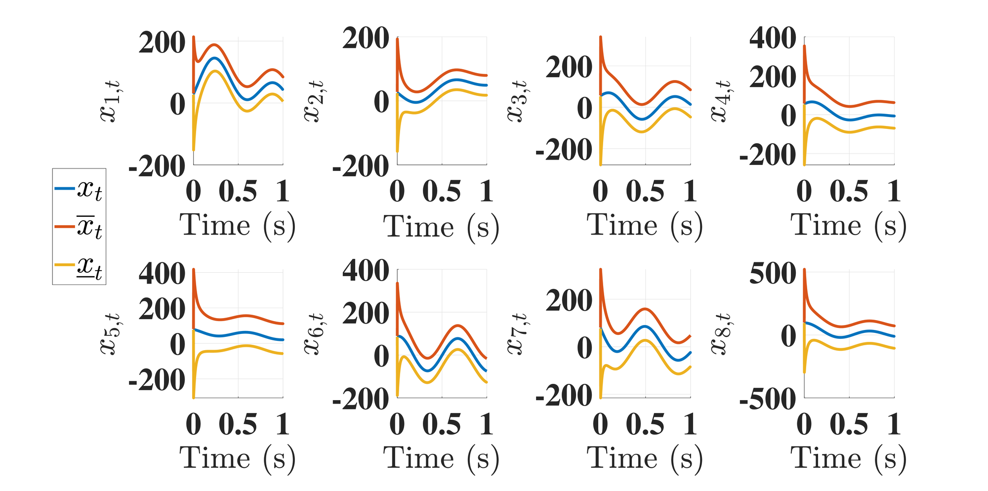 and the bounds of \( x_t\) at all times after time \( 0\) given by